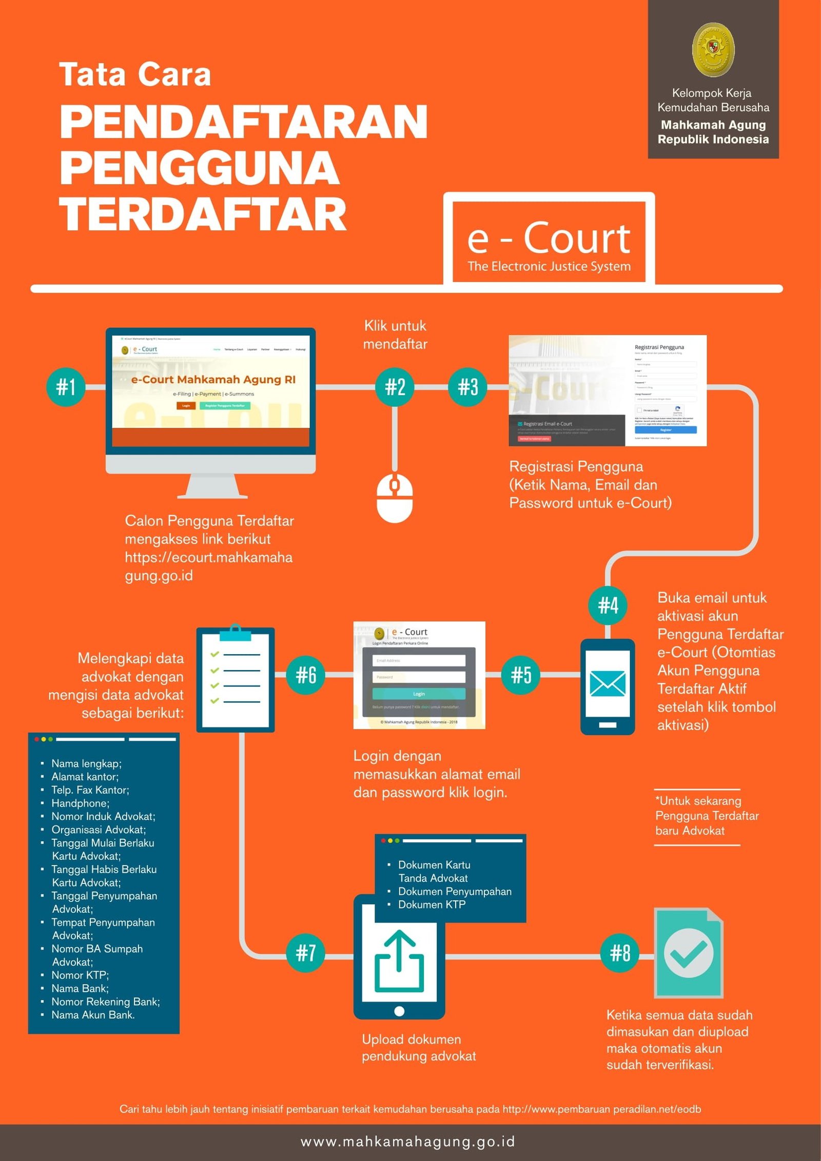 - Keputusan Ketua Mahkamah Agung RI Nomor 122/KMA/SK/VII/2018 Tentang Pedoman Tata Kelola Pengguna Terdaftar Sistem Informasi Pengadilan
