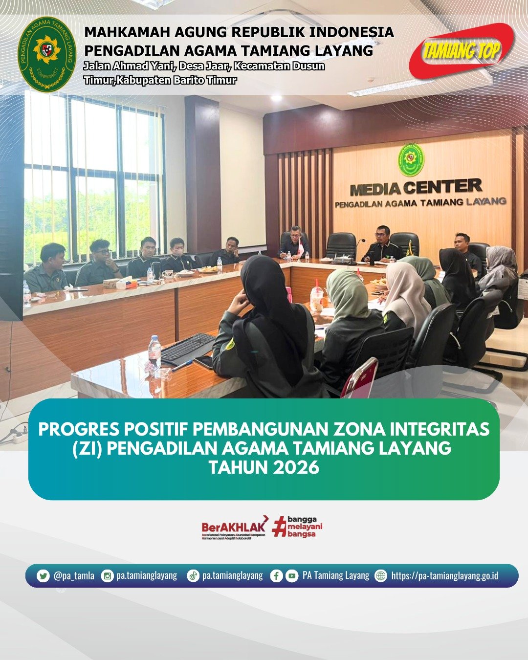 PROGRES POSITIF PEMBANGUNAN ZONA INTEGRITAS (ZI) PENGADILAN AGAMA TAMIANG LAYANG TAHUN 2026