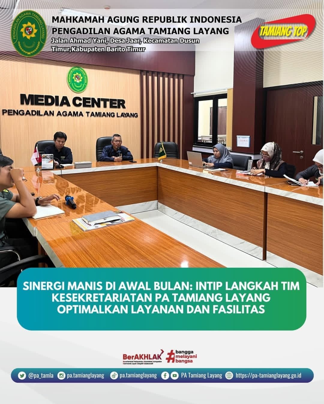 TAMIANG LAYANG – Memasuki awal bulan dengan semangat baru, Pengadilan Agama (PA) Tamiang Layang menggelar Rapat Koordinasi Kesekretariatan yang interaktif pada Rabu (01/04/2026). Bertempat di Media Center PA Tamiang Layang, pertemuan ini dihadiri secara kompak oleh seluruh jajaran Staf Kesekretariatan, CPNS, hingga rekan-rekan PPPK.